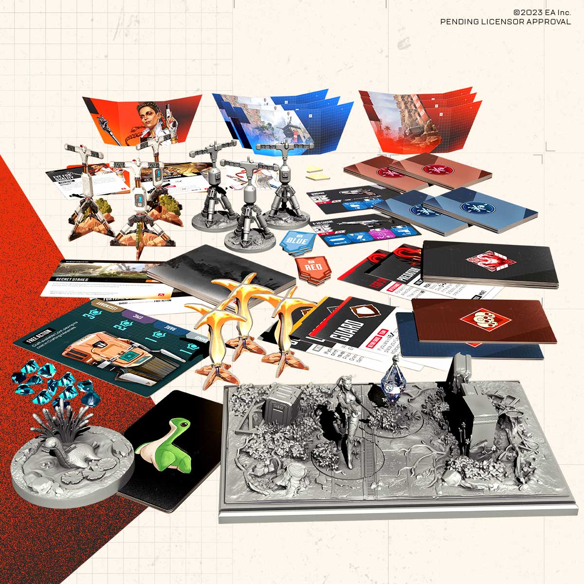 Time to dig up some gold! This Kickstarter exclusive expansion introduces the Loba Legend into Apex Legends™: The Board Game, and contains all of her necessary components, including the miniatures for the Legend and her power, cards, a card holder diorama and storage tray. Also included are highly detailed plastic miniatures for the Control Point and Heat Shields game variants, as well as an exclusive Nessie Special Feature with a dedicated Nessie miniature.